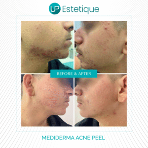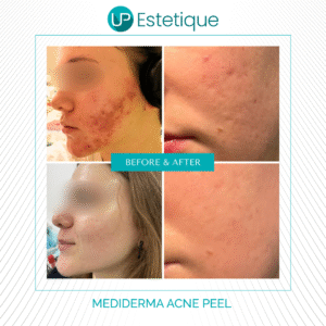 Mediderma Acne Peel – tratament dermatologic eficient pentru acnee – un peeling profesional cu rezultate dovedite clinic, care reduce vizibil acneea, normalizează secreția de sebum și regenerează pielea în profunzime.